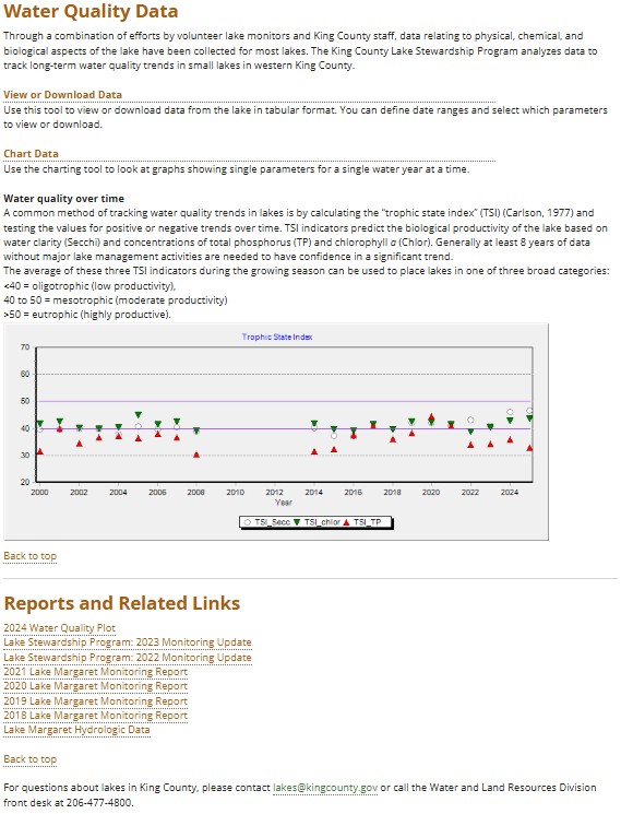 Lake Margaret Water Information from King County